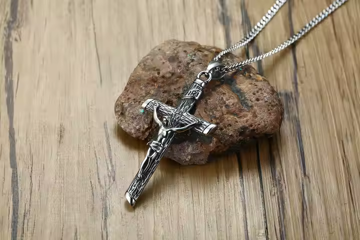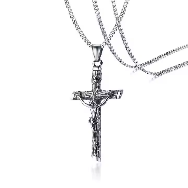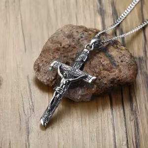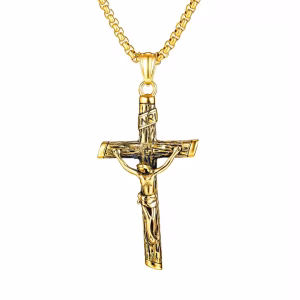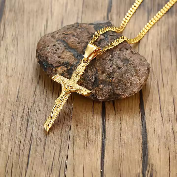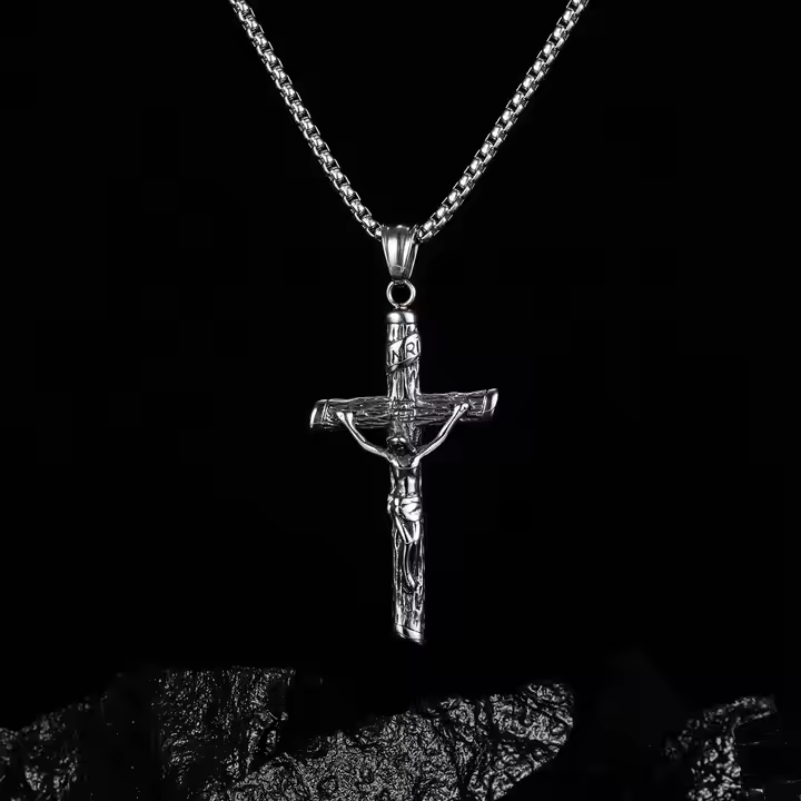 Elegant and meaningful, this Crucifixion Cross Necklace is crafted from stainless steel, featuring a detailed depiction of Christ’s sacrifice. A timeless symbol of faith and strength—perfect for everyday wear.