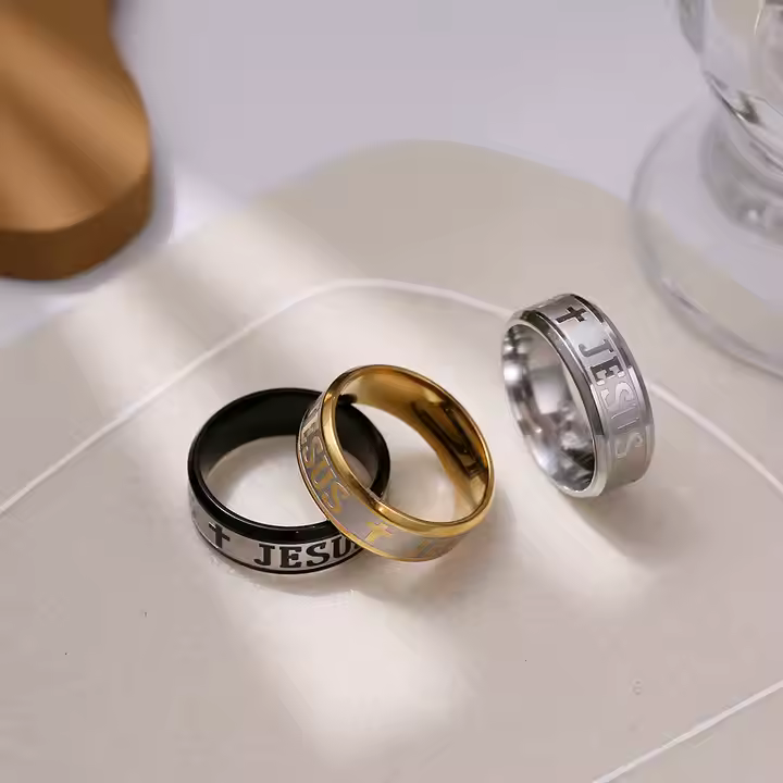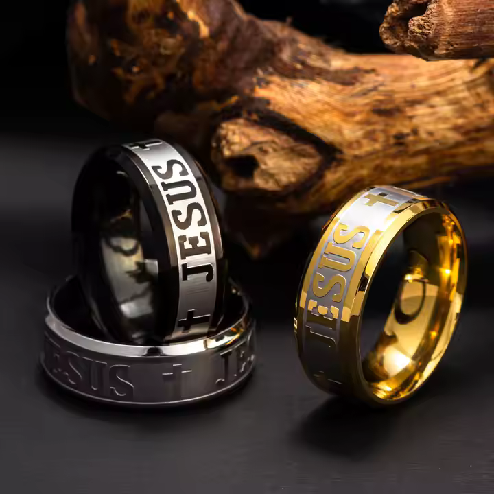 Embrace a blend of contemporary design and religious significance with this 8mm Stainless Steel Jesus Cross Ring, an ideal addition to any jewelry collection.