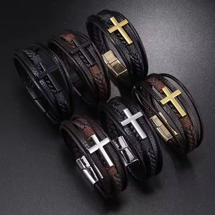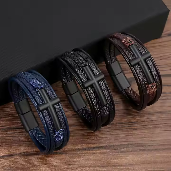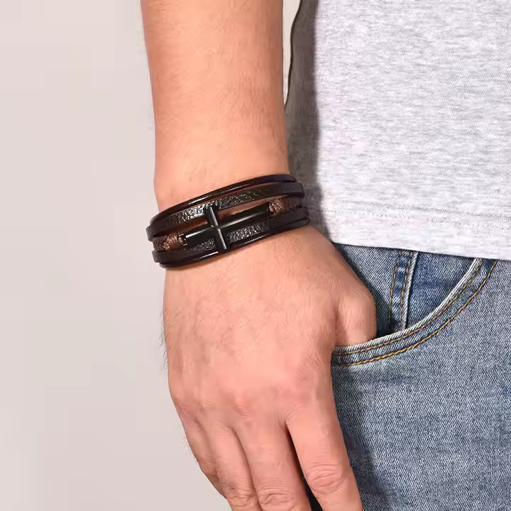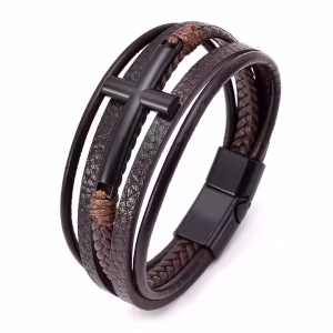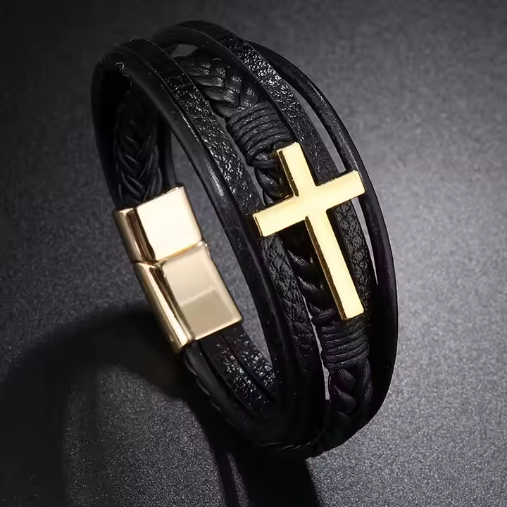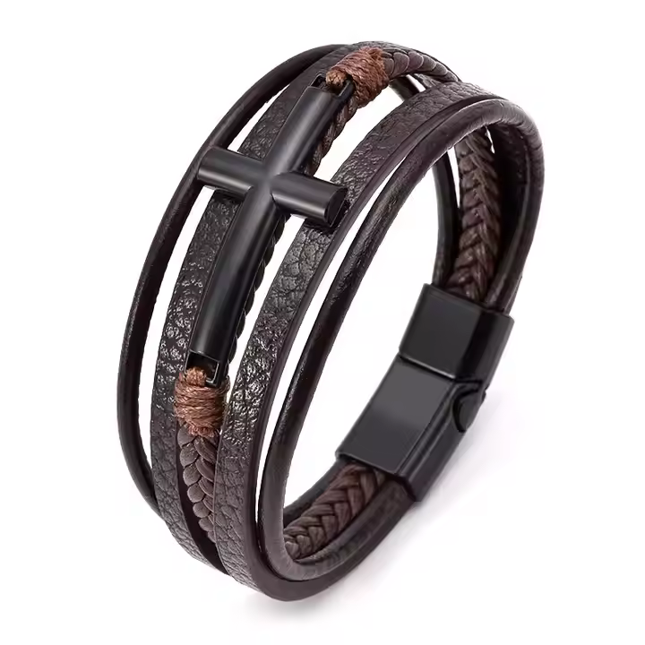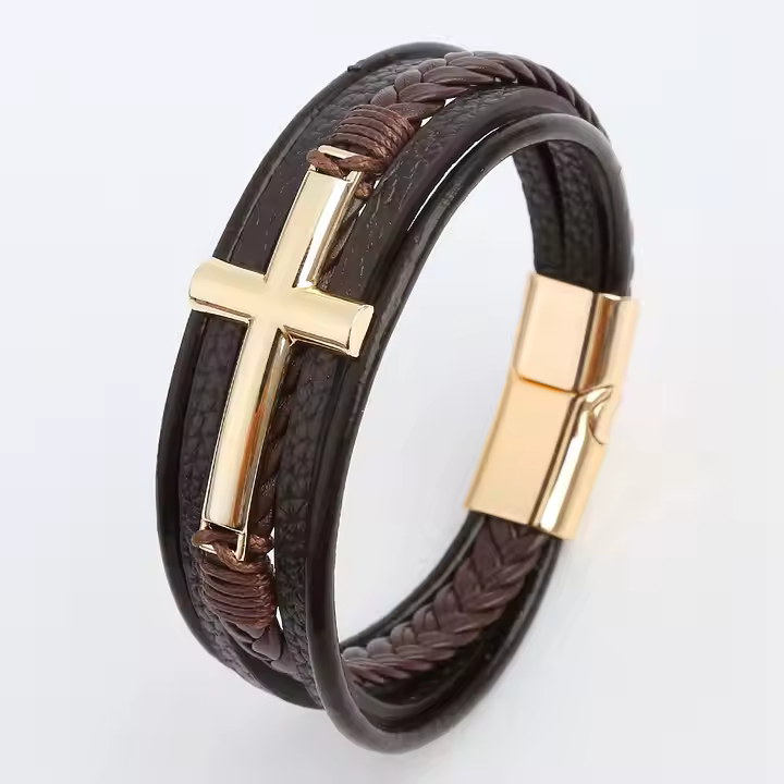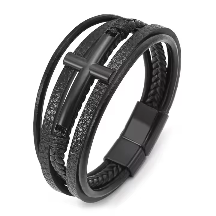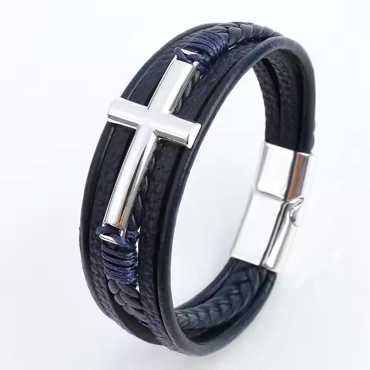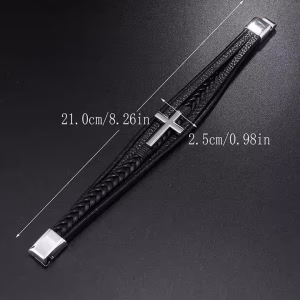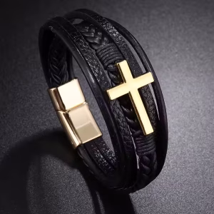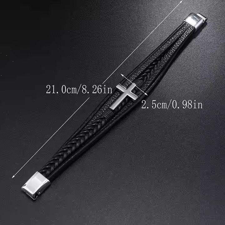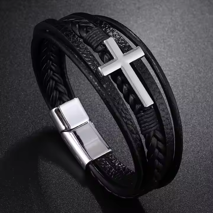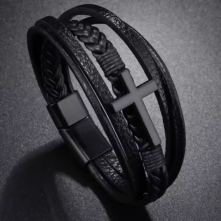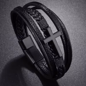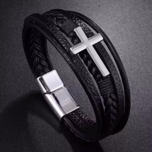 Our Leather Bracelet with Cross is the perfect blend of rugged style and timeless faith. Made from high-quality PU leather with a woven microfiber finish, this bracelet features a bold stainless steel cross centerpiece and a secure magnetic clasp for easy wear. Designed for both men and women, it’s a versatile piece that complements casual and semi-formal looks while serving as a daily reminder of your faith.