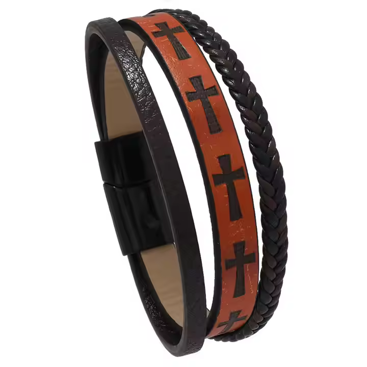 Embrace bold faith and timeless style with our Leather Bracelets with Engraved Crosses. Designed for both comfort and inspiration, these bracelets feature high-quality PU leather and detailed cross engravings that make a powerful statement. Whether worn alone or layered, they’re perfect for daily wear, gifting, or sharing your faith in a modern, meaningful way.