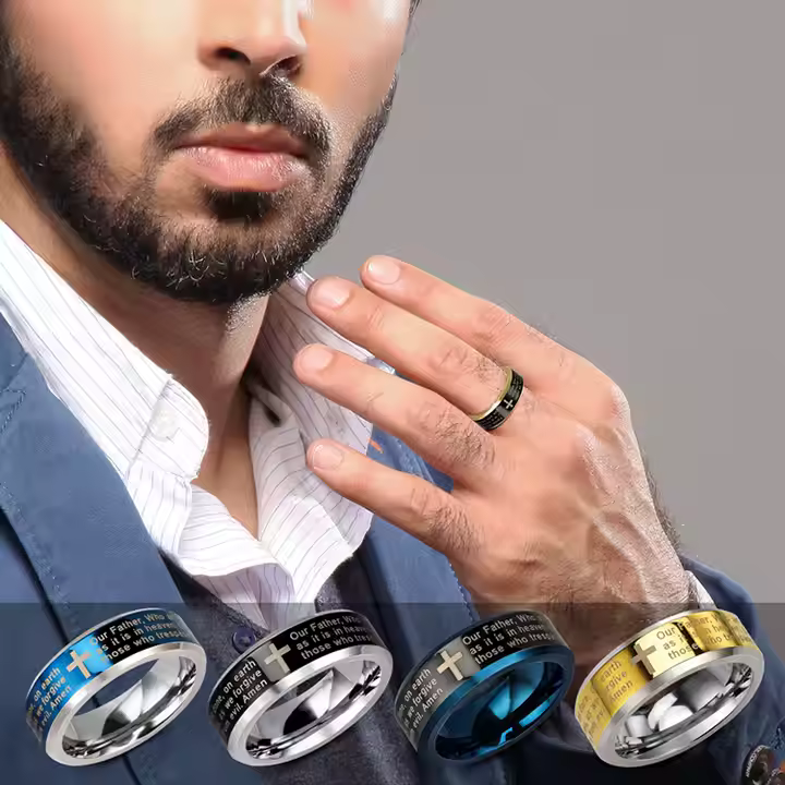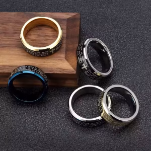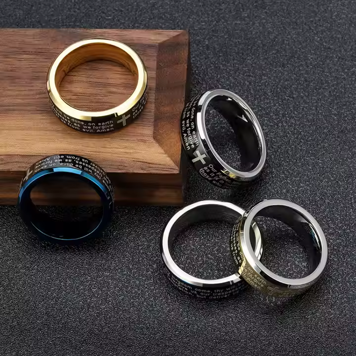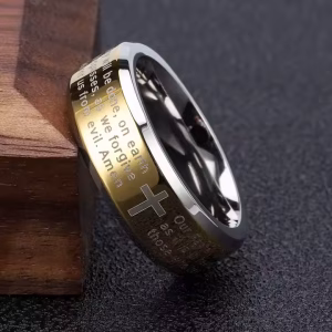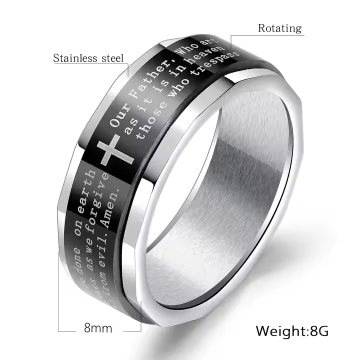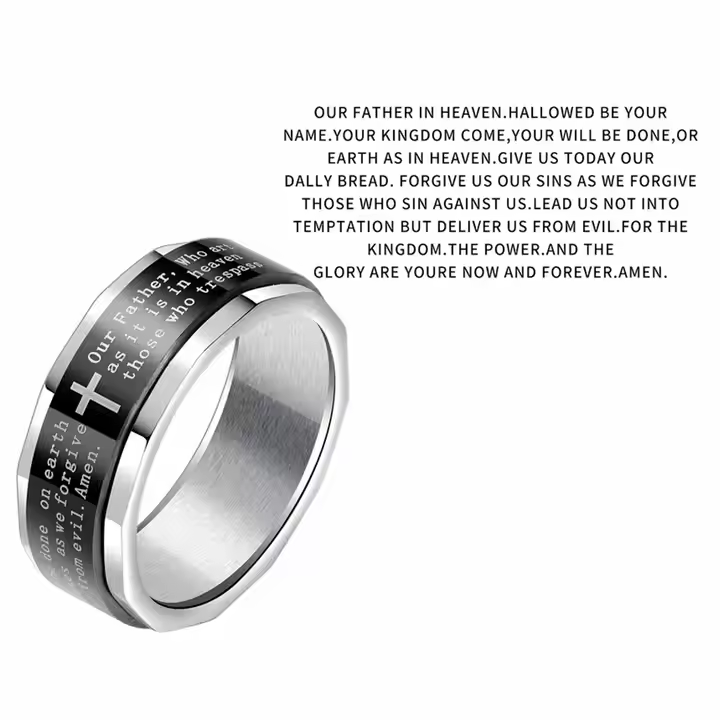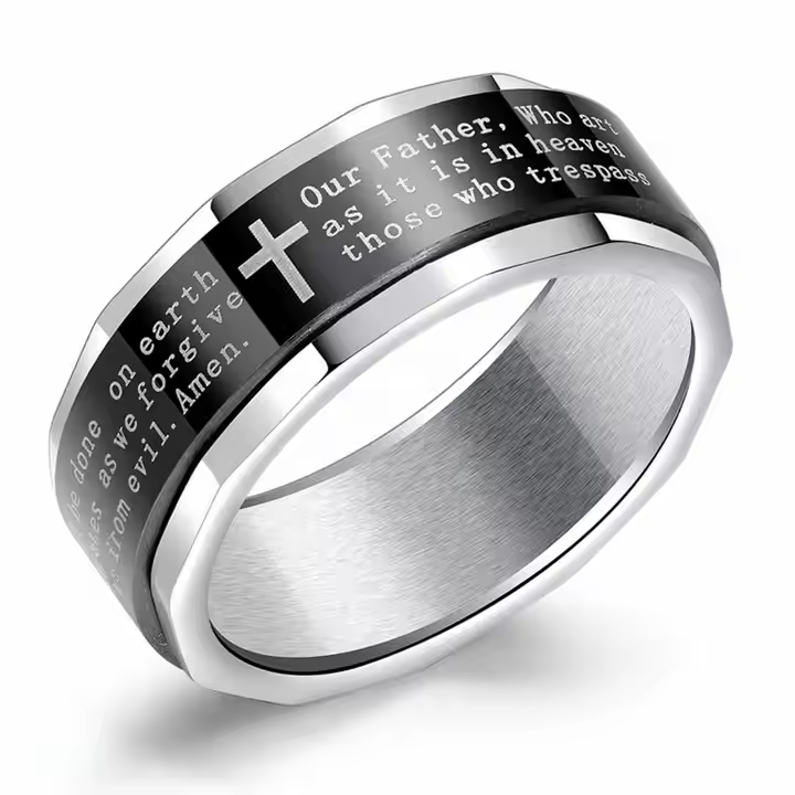 Wear your faith with elegance and strength with our Lord’s Prayer Ring, a timeless unisex piece designed for those who carry their beliefs close to their heart. Crafted from high-quality stainless steel, this minimalist yet powerful ring features the engraved Lord’s Prayer in a clean, easy-to-read font alongside a classic cross symbol. Available in blue, gold, silver, and two-tone finishes, this ring is the perfect everyday accessory for Christians who want to make a subtle yet impactful statement of faith.
