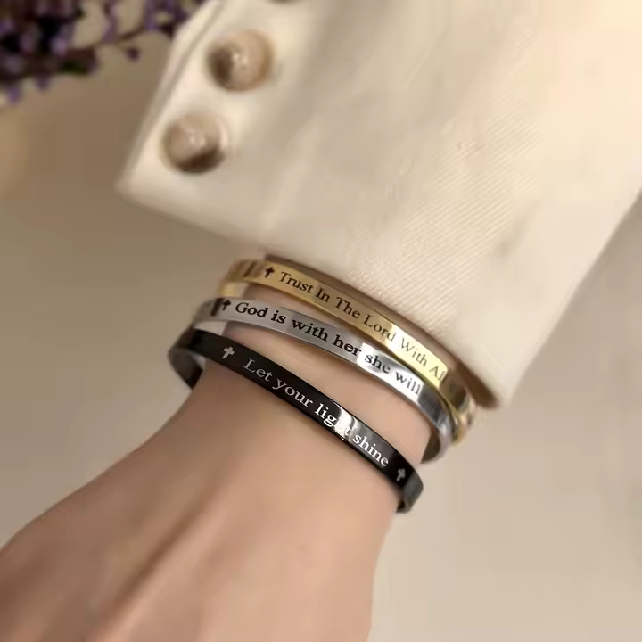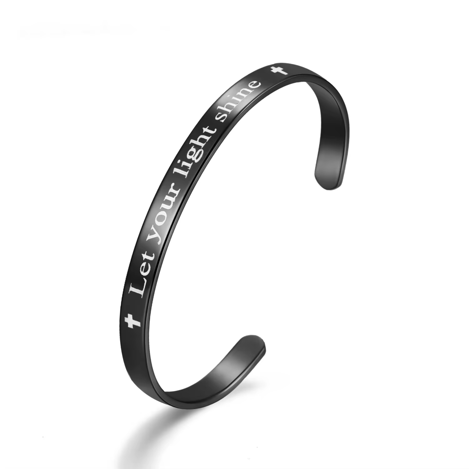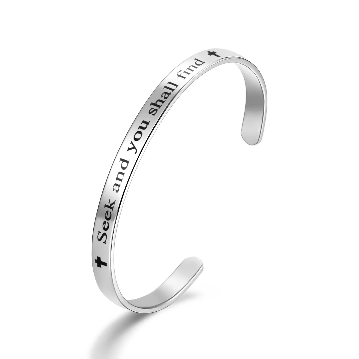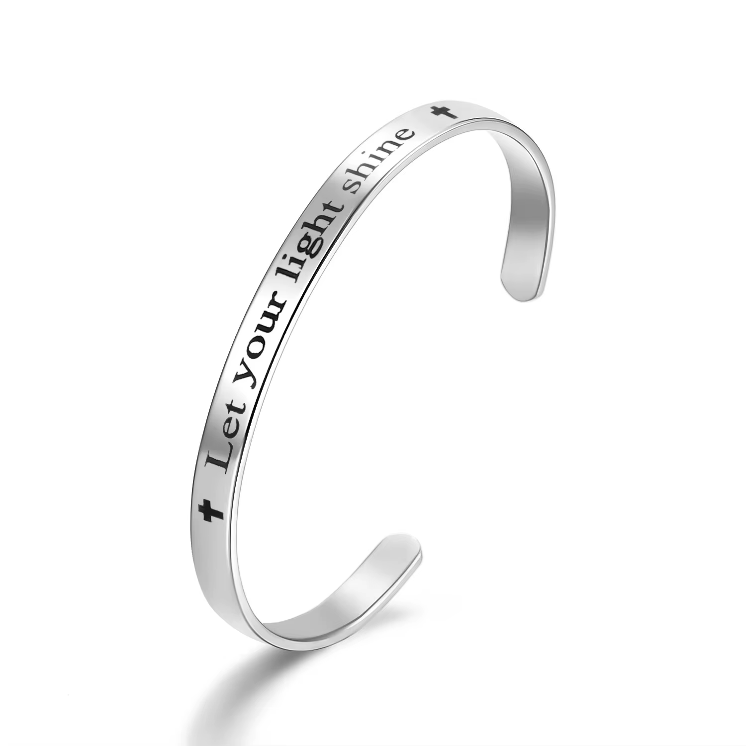 Elevate your everyday look with our Unisex Inspirational Cuff Bracelets, crafted from high-quality stainless steel for durability and style. These minimalist open cuff bracelets are engraved with uplifting words and scripture, making them the perfect daily reminder of strength, faith, and encouragement. Suitable for both men and women, they make a thoughtful gift for loved ones or a meaningful accessory for yourself.